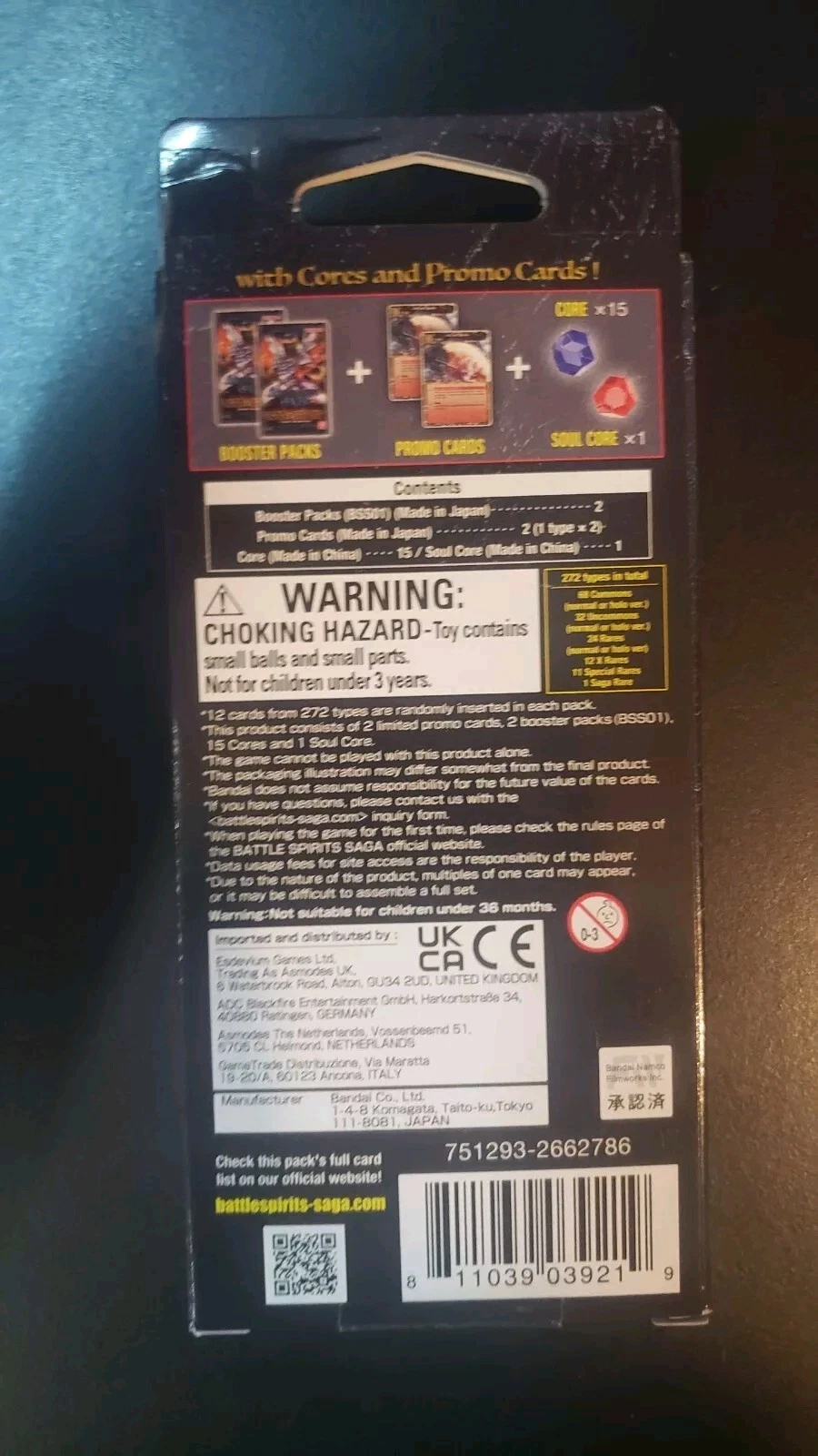 Die Core-Pakete bieten alles, was Sie zum Starten von Battle Spirits Saga: Booster Packs und Cores benötigen. In Kombination mit einer einzigartigen Promokarte ist dies ein Muss für jeden Spieler!