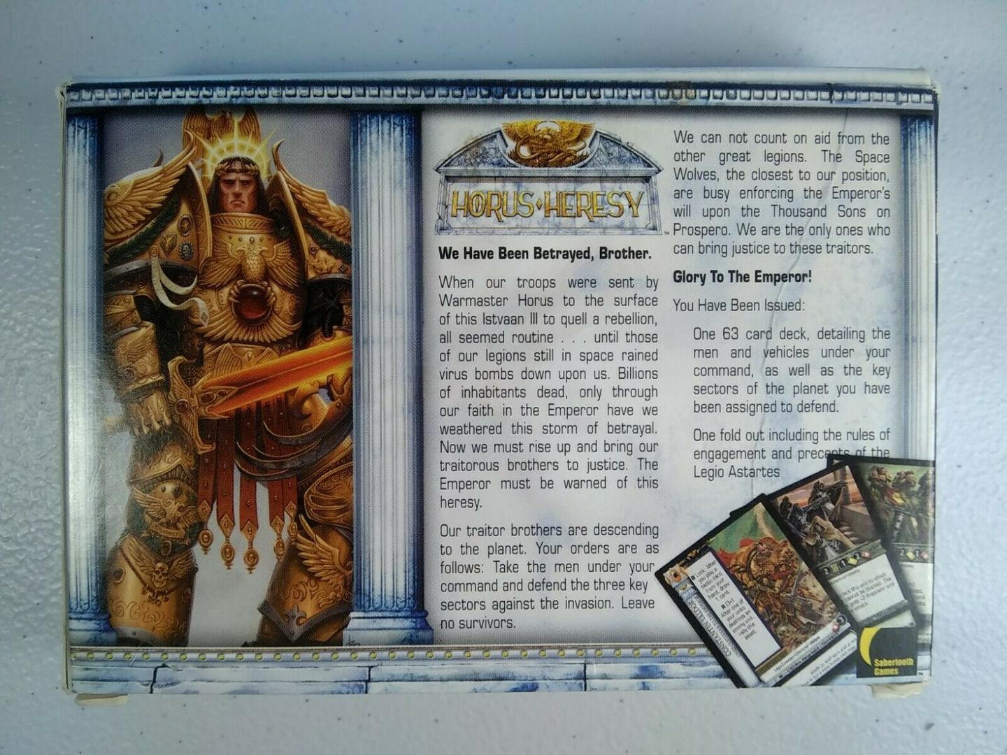 Hallo! Ich verkaufe hier ein komplettes Horus Heresy 40k Warhammer Loyalist Starter Deck (63 Karten).